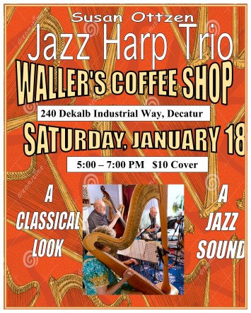 Susan Ottzen Jazz Harp Trio at Waller’s Coffee Shop, January 18th, 5-7 pm